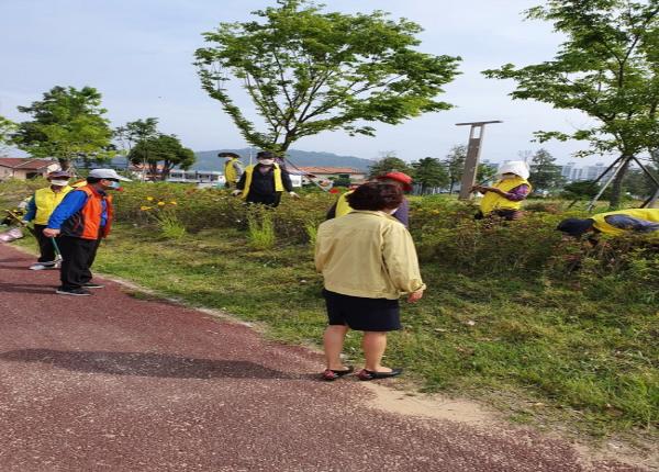 남원 동충동 행정복지센터가 19일 노인일자리사업장 현장 간담회를 실시했다. 앞서 동충동 행정복지센터는 ‘생활 속 거리두기’ 전환에 따라 지난 6일부터 코로나 19로 중단됐던 노인일자리 및 사회활동지원사업을 비대면 및 실외활동 중심의 공익형 환경개선사업으로 재개했다.