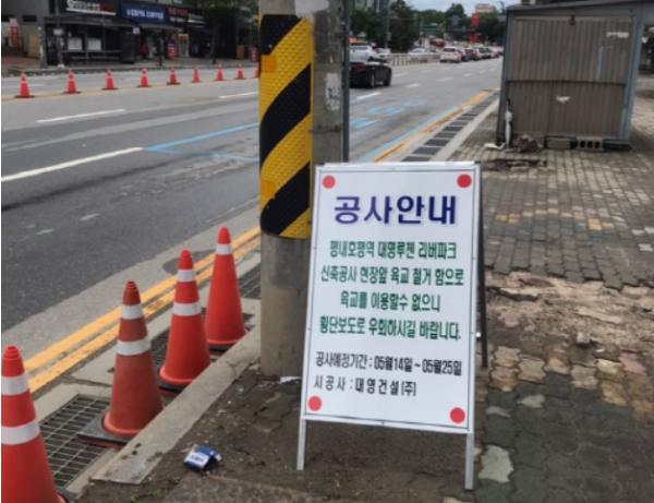 이에 시에서는 육교를 무단으로 철거하여 교통의 방해 또는 위험을 발생하게 한 대명루첸아파트의 사업시행자인 ㈜루첸파크에 대하여 「도로법」 위반사항을 고발하겠다고 밝혔다.