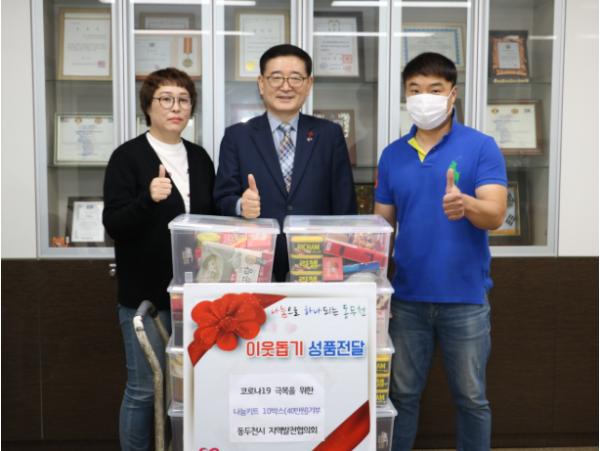 동두천시 자원봉사단체인 ‘동두천시 지역발전협의회’(회장 최여원)에서는 지난 19일 오전 자원봉사센터에 코로나19로 어려움에 처한 청소년을 위한 나눔키트(선물상자) 10박스(40만원 상당)를 기부하는 전달식을 가졌다.