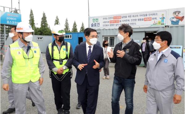 우선적으로, 허 시장은 도장공장 건설사인 포스코 건설과 하청업체 노동자들의 애로사항을 청취했다. 특히 이천 물류창고 화재와 같은 참사가 발생하지 않도록 건설 과정에 안전수칙 준수 및 철저한 점검으로 안전사고 예방에 만전을 기해줄 것을 당부했다.