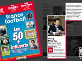 정몽규 대한축구협회(KFA) 회장이 프랑스 주간지 ‘프랑스 풋볼’이 선정한 축구계 영향력 있는 인물 50인 중 30위에 선정됐다.