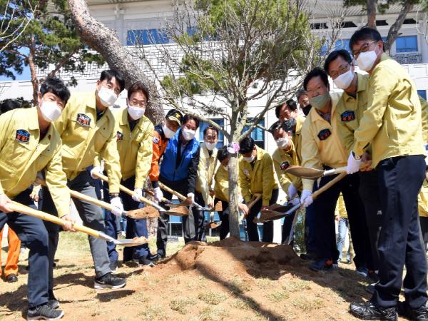 이날 심은 나무는 겨레의 얼과 민족정신을 상징하는 나라꽃 무궁화로 단심계(꽃 중심에 붉은 무늬), 배달계(붉은 무늬가 없이 순백색) 등 국산 품종 7본이다. 도는 민족과 애환을 같이하며 온갖 고난과 역경을 함께 이겨낸 무궁화처럼 이번 코로나19 재난도 도민이 합심하여 극복해 나 가자는 의미를 담았다.
