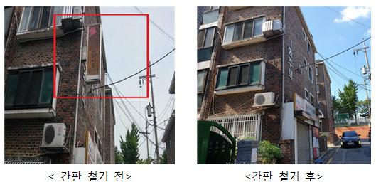 구는 2018년에 113개, 2019년에 116개의 간판 정비를 완료하였고, 올해도 5월 부터 9월까지 5개월간 신청을 받아 정비 사업을 실시할 예정이다.