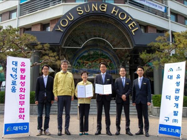 대덕구(구청장 박정현)가 21일 유성호텔 회의실에서 지역화폐 대덕e로움 사용자 확산과 유통활성화를 위해 유성호텔과 업무협약을 체결했다.