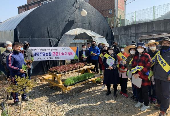 광명시 작목반연합회(회장 장일수)는 7일 밤일과 옥길 시민주말농장에서 주말농장 참여가족을 대상으로 모종 나눔 행사를 개최했다.