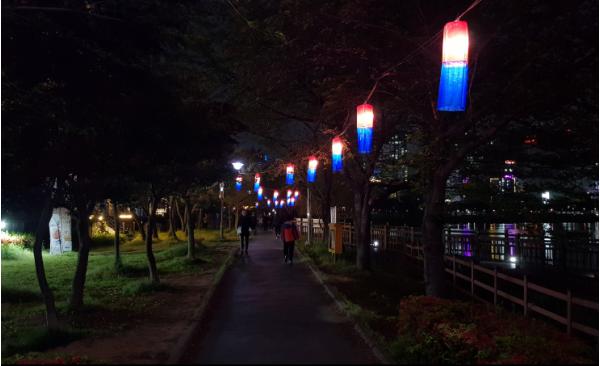 광주 서구(구청장 서대석)는 운천호수에 산책로를 따라 코로나19 극복 응원을 담은 전통등을 설치했다.