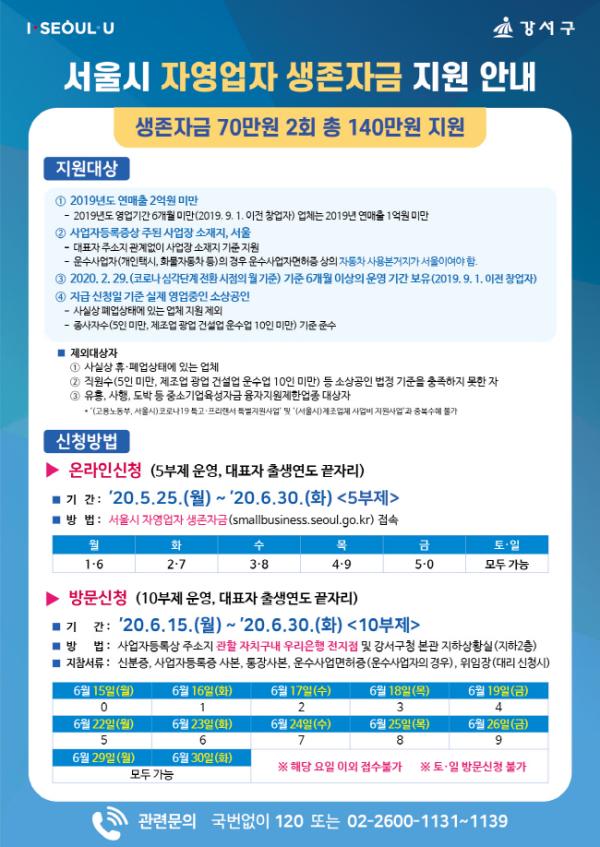 기타 자세한 문의는 강서구청 생존자금 접수처(☎02-2600-1131~1139)로 하면 된다.