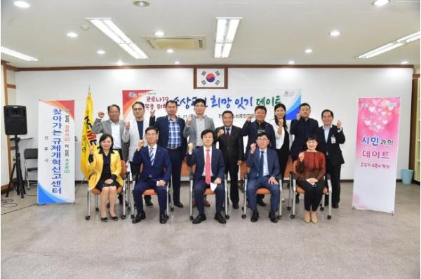 조규일 진주시장은 코로나19 발생으로 인해 소상공인의 매출악화가 장기화되는 가운데 21일 오후 4시 30분 진주시소상공인연합회 사무실에서 ‘소상공인 희망 잇기 캠페인’에 참여한 업체대표들과 5월「시민과의 데이트」시간을 가졌다.