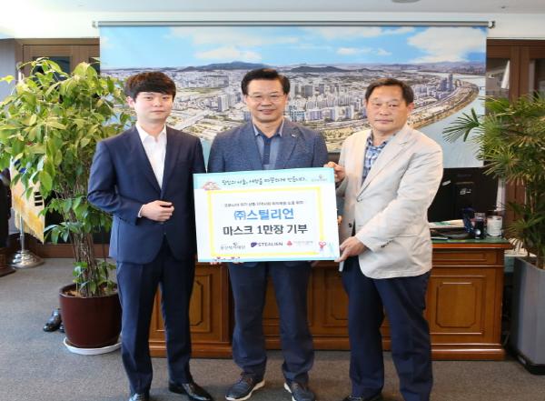 사이버 보안 기업 스틸리언(대표 박찬암)이 21일 용산복지재단(이사장 승만호)에 국산 마스크 1만장을 기부했다.