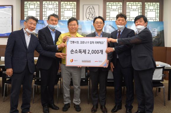 지난 2일(목) 오후 신세계면세점(명동점)은 중구청 3층 구청장실에서 손소독제 2000개를 기증했다. 코로나19 장기화에 따른 지역사회 내 감염확산을 예방하고, 남대문시장 소상공인들의 어려움을 함께 극복하겠다는 취지다.