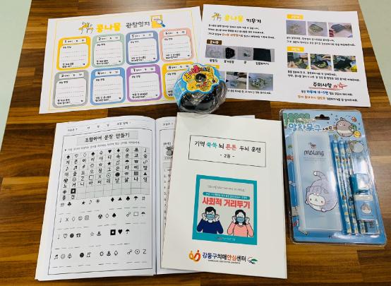 강동구(구청장 이정훈)가 코로나19 여파로 인한 치매 돌봄 공백을 최소화하기 위해 치매 어르신들이 집에서도 쉽게 할 수 있는 ‘기억 쑥쑥 뇌 튼튼’ 인지자극 세트를 개발해 지원하고 있다.