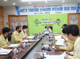 청도군(군수 이승율)은 지난 19일 청도군청 제1회의실에서 코로나-19 대응 지역경제회복을 위한 지방재정 신속집행 추진상황 점검회의를 가졌다. 군은 매일 아침 코로나19 방역대책 확대간부회의와, 농번기를 맞아 인력수급이 어려운 농가를 대상으로 전공무원 농촌일손돕기를 실시하면서 불가피하게 저녁시간에 회의를 진행하게 되었다고 밝혔다.