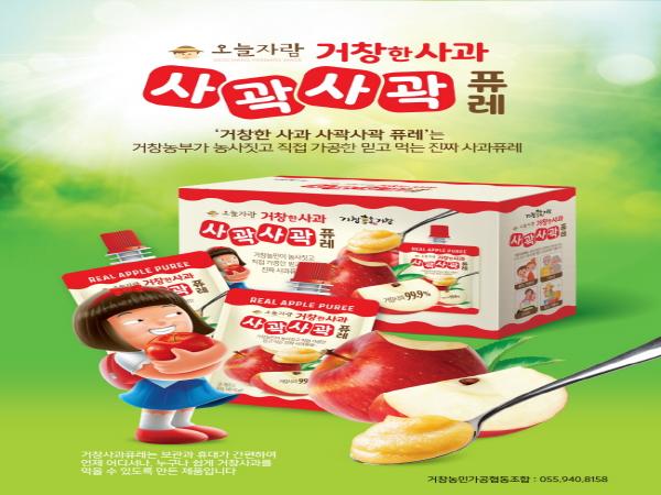 거창농민가공협동조합 사과음료?잼팀(대표 김덕홍)에서는 ‘오늘자람 거창한사과 사곽사곽 퓨레’생산을 시작했다고 26일 밝혔다.