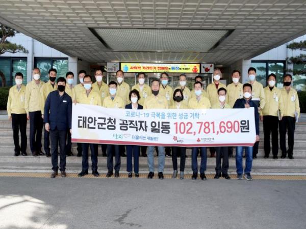 이를 위해 태안군청 5급 이상 간부 공무원과 6급 이하 직원을 포함한 군 전체 900여 공직자가 모금 활동에 동참했다.