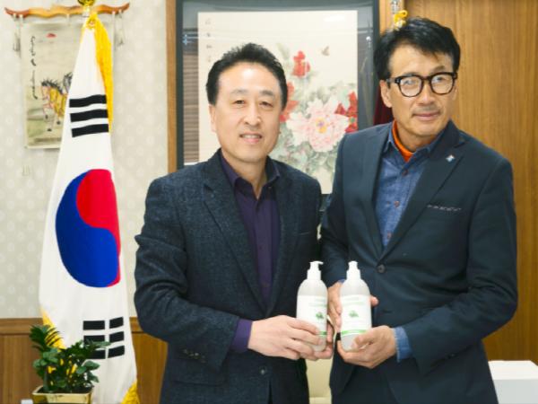 화성시의회(의장 김홍성)는 6일 오전 11시 의장실에서 코로나19 확산 방지 및 예방을 돕기 위해 관내 기업체에서 기부한 손소독제 500개를 화성시 관내 거주시설 4개소에 전달했다.