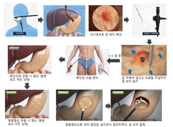 최근 각종 의료분야에서 많이 시행되고 있는 복강경 수술의 경우, 형광염료를 사용하여 위장 등에 발생한 종양의 위치를 미리 표시해 두는 것이 중요하다. 그러나, 현재 사용 중인 형광염료는 번짐 현상이 있고, 24시간 이후에는 형광 신호를 검출할 수 없어 병변 확인이 어렵다는 문제가 있었다.