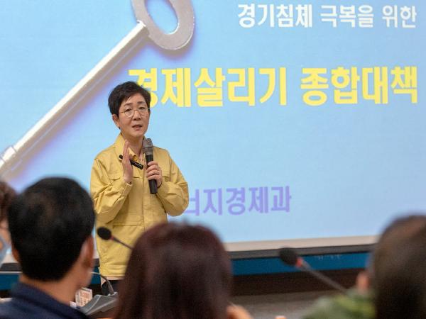 박정현 구청장은“코로나19 확산 방지라는 급한 불을 끄는 것에 그치지 않고 꺼져가는 경제 활성화의 불씨를 되살리는 노력이 절실한 시기”라며 “위기는 곧 새로운 변화의 시작인만큼 머뭇거리기 보단 주민 곁으로 한 걸음 더 들어가 주민과 함께 이 경제위기를 돌파해 나갈 수 있도록 최선을 다할 것”이라고 말했다.