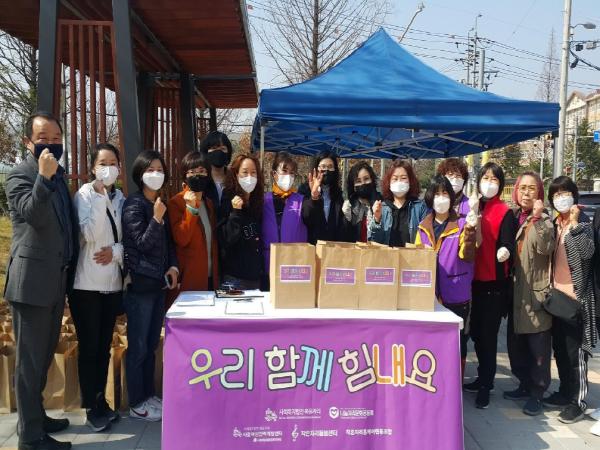 지난 4월 3일 신천근린공원 앞에서 사회복지법인 복음자리(이사장 신명자)와 시흥여성인력개발센터(관장 최정은)직원들이 코로나19로 중지되었던 밑반찬서비스로 어려움을 겪고 있던 신천동 관내 취약계층 500가구에 밑반찬세트와 마스크를 전달해드리는 나눔 행사를 가졌다.