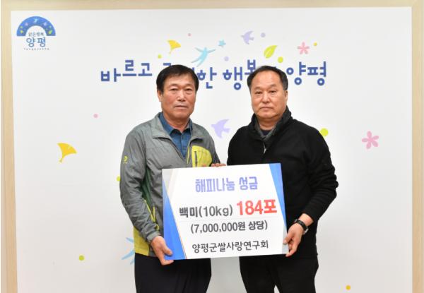 이날 기부된 백미(10kg) 184포는 양평군 내 12개 읍·면 저소득 취약계층에 전달될 예정이다.