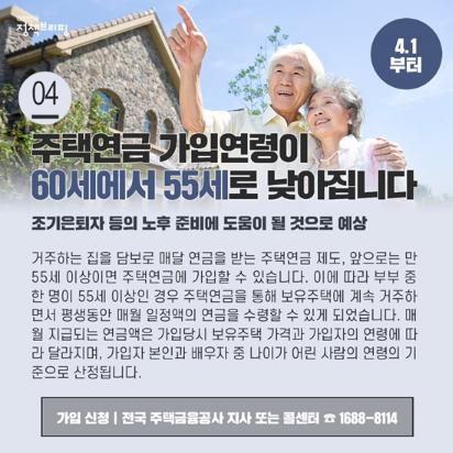거주하는 집을 담보로 매달 연금을 받는 주택연금 제도, 앞으로는 만 55세 이상이면 주택연금에 가입할 수 있습니다.