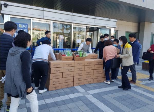 지난 달 26일 유성구 공무원들이 시작한 지역농산물꾸러미 공동구매 행사는 지역사회의 큰 호응을 얻으며 최근 참여 요청이 잇따랐다.