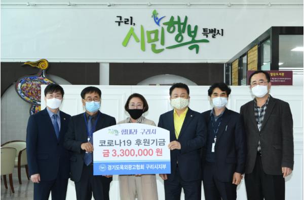 구리시(시장 안승남)는 7일 경기도 옥외광고협회 구리시지부(지부장 한석현)에서 코로나19 차단을 위해 구리시종합사회복지관(관장 이상희)에 후원금 330만원을 전달했다고 밝혔다.