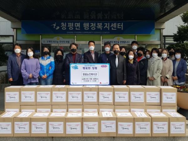 ‘청평노인복지관(관장 조수동)’은 7일 오전에 가평군 청평면사무소를 방문하여 위생용품 및 식료품 지원 키트 40박스를 청평면에 기탁하였다.