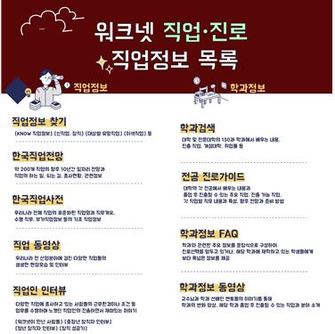 워크넷의 <직업.진로>는 지난해 기준 일평균 4만 명이 방문하는 콘텐츠로 학생들이 가정에서도 진로 탐색을 할 수 있고 학교 선생님이 온라인 진로 교육에 활용할 수 있는 유용한 자료가 탑재돼 있다.