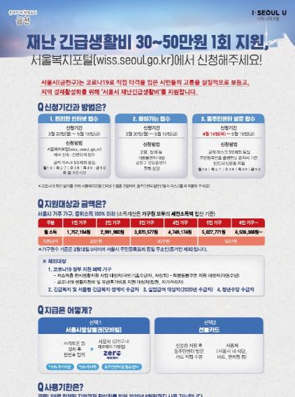 한편, 구는 주민들의 신청편의를 위해 ‘재난긴급생활비 신청서 작성요령’을 구 홈페이지(www.geumcheon.go.kr)와 블로그, SNS 등에 게시해 안내하고 있다.