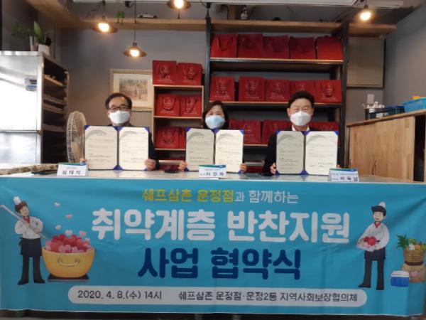 이번 협약은 운정2동 지역사회보장협의체, 쉐프삼촌 운정점과 운정2동이 협력해 반찬 나눔 사업을 추진하기 위한 것이다. 이에 따라 앞으로 운정2동 지역사회보장협의체는 자원봉사자를 연계하고 쉐프삼촌 운정점은 반찬을 제공한다. 또한 운정2동은 대상자 선정 및 기타 필요한 사항을 지원할 계획이다.