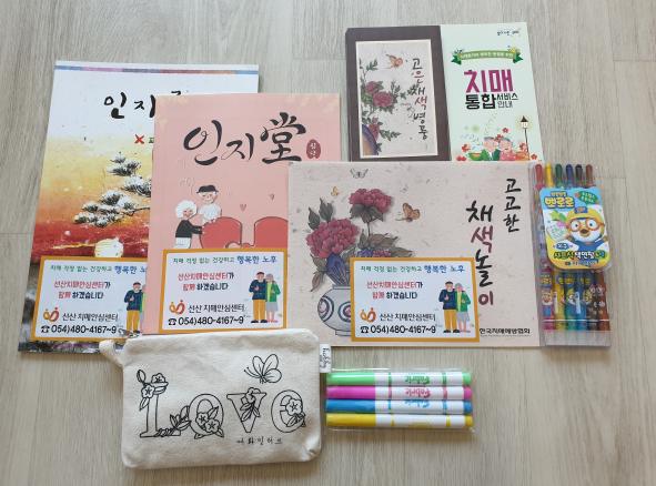 인지강화 키트는 대상자 인지단계에 맞는 맞춤형 인지워크북, 인지미술책자, 치매예방 수칙 등으로 구성되었으며,