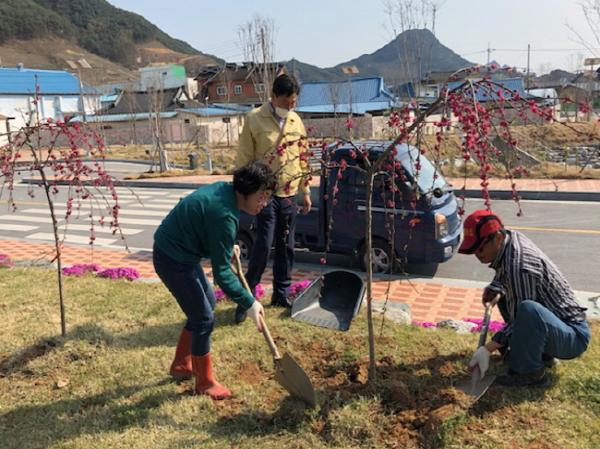 순창군 동계면 행정복지센터는 지난 8일 현포 우수저류시설 인근에 홍도화 110본을 식재하는 식목행사를 가졌다.