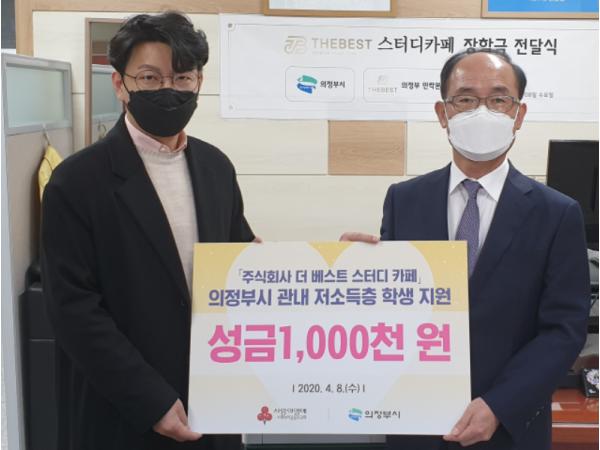 ㈜더베스트 스터디카페(대표 황주하)는 4월 8일 의정부시 관내 저소득층 학생 지원을 위한 성금 100만 원을 기부했다.