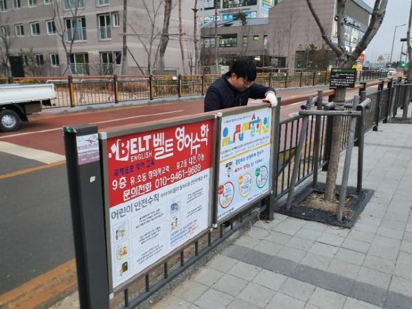 학교근처에 설치 된 불법광고물 대부분이 학원 광고였으며, 인도 휀스, 가로수 등에 설치한 불법광고물 고정간판, 포스터, 전단지, 현수막 등을 제거했다.