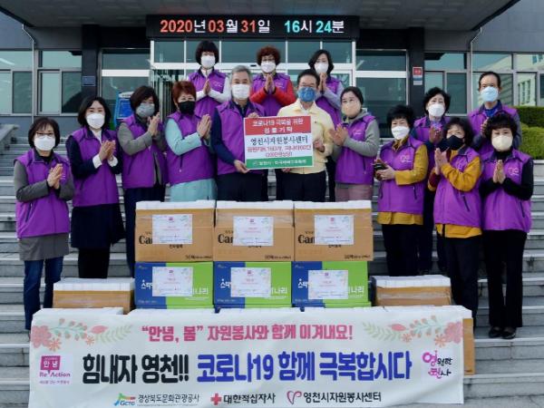 영천시자원봉사센터(소장 조녹현)는 31일 자원봉사자들과 함께 만든 코로나19 대응 응원키트 200개를 영천시에 전달했다.