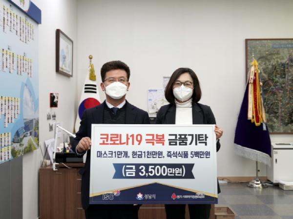성남시는 이날 오전 11시 시장 집무실에서 은수미 성남시장과 정영배 ㈜ISC 회장, 이상철 상무 등이 참석한 가운데 코로나19 극복 금품 전달식을 했다.