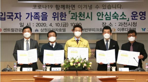 이를 위해 과천시는 10일 시청 상황실에서 안양시 소재의 삼원프라자호텔, 센트럴관광호텔, 어반부띠크호텔, 이루다호텔 등 4곳과 업무 협약을 맺었다.