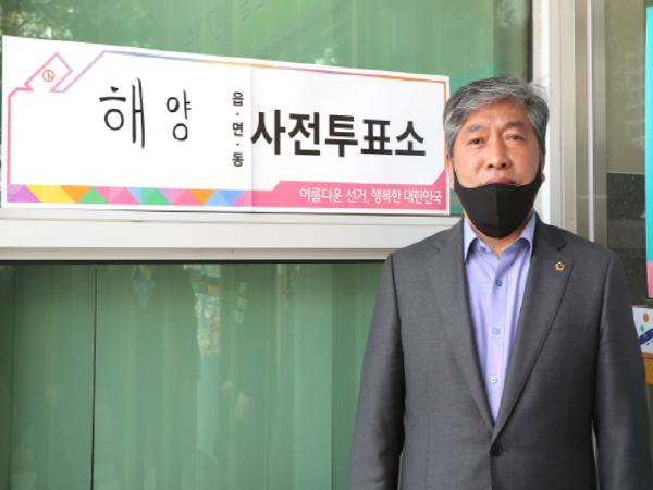 송한준 경기도의회 의장(더민주, 안산1)이 10일 제21대 국회의원 선거 사전투표 마치고 유권자의 투표참여를 독려했다.