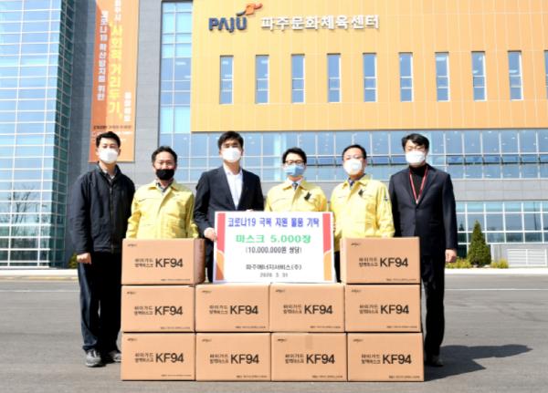 파주시는 10일 파주에코에너지㈜(대표이사 홍동표)가 마스크 5,000장을 구입해 기탁했다고 밝혔다.