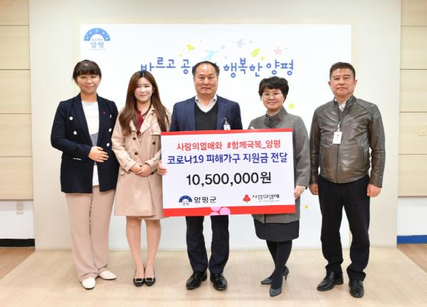 이날 양평군에 전달된 1050만원은 관내 코로나19 피해로 고통 받는 105가구에 1인당 10만원 상당의 지역화폐(양평통보)로 지원될 계획이다. 관내 소외계층도 돕고 소상공인도 살리겠다는 취지이다.