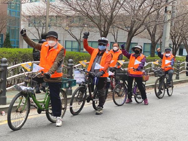 코로나 예방 자전거 홍보단 유종환(72세, 남) 어르신은 “자전거 타고 운동하면서 이웃들 기분을 좋게 해주니 이보다 보람찬 일이 어디 있겠어”라며 “모두 함께 이겨내면 코로나도 금방 사라질 거야”라고 소감을 전했다.