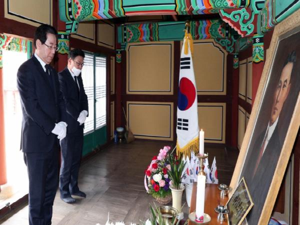 김영록 전라남도지사는 11일 대한민국 임시정부 수립 기념일을 맞아 함평 구봉사를 찾아 독립운동가 일강 김철 선생 영정에 참배했다.