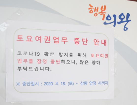 의왕시는 코로나19의 확산을 막기 위해 토요 여권민원실 운영을 오는 18일부터 코로나19 안정 시 까지 잠정 중단한다고 밝혔다.