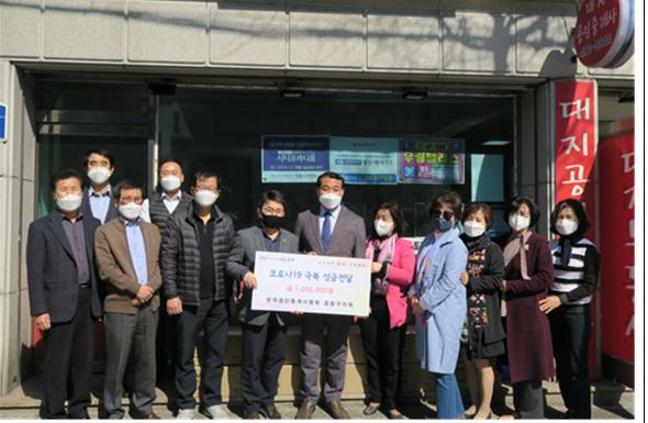 중랑구(구청장 류경기)는 8일 한국공인중개사협회 중랑구지회(지회장 박병체)로부터 코로나19 극복을 위한 성금 100만원을 전달받았다고 밝혔다.