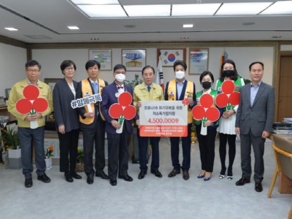 포천시는 지난 10일 경기사회복지공동모금회 경기북부(본부장 강주현) 코로나19 위기극복 지원금 1,332만원에 대한 전달식과 국제라이온스협회 354-H지구 7지역 2지대(위원장 홍우경)에서 후원하는 성금 450만원에 대한 기탁식을 함께 가졌다.