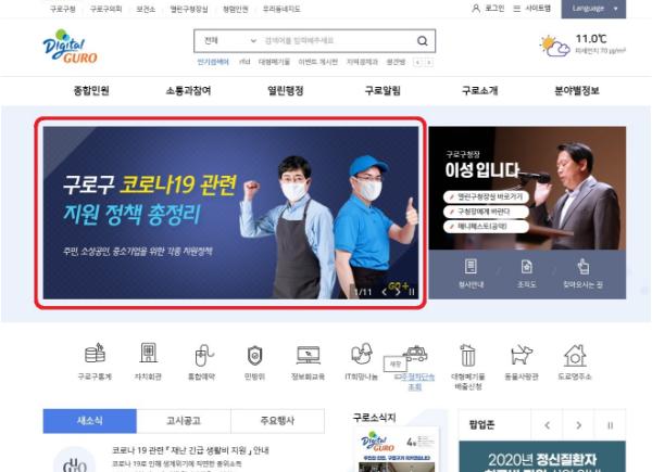 구로구청 홈페이지(www.guro.go.kr)를 방문해 메인 화면의 안내창을 클릭하면 해당 페이지로 이동한다.