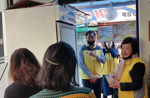여서동주민센터(동장 조민수)에 따르면 지난달 31일 여서동주민자치위원회는 코로나19를 극복하고 여문상가 활성화를 응원하기 위해 면마스크 600개를 구입해 여서동 여문상가를 일일이 방문 배부했다.