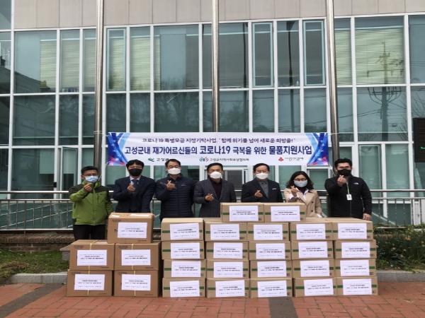 방역 물품은 코로나19 극복을 위한 착한기부릴레이에 기탁된 성금으로 마련됐으며, 고령 · 노인성 질환 등의 이유로 일상생활을 혼자서 수행하기 어려운 장기요양급여 대상 어르신들에게 전달됐다.