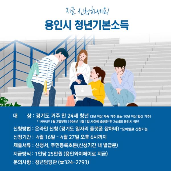 용인시는 4월16일부터 4월27일 오후 6시까지 올해 2분기 청년기본소득 지급 신청을 받는다.