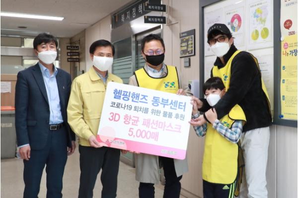 14일 자원봉사단체 ‘헬핑핸즈 동부센터’는 코로나19 극복을 위한 마스크 5,000매를 경기 사회복지공동모금회에 전달했다.